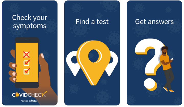The symptom check portion asks interactive questions that recommend the next steps an individual can take to make sure they stay safe.